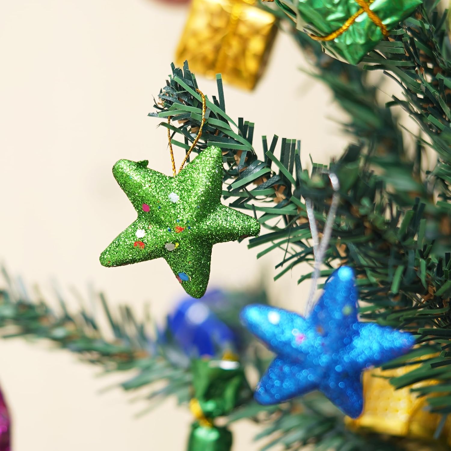 - Vibrant Glitter Finish: Each star is coated with a generous layer of shimmering glitter, available in festive green and brilliant blue, ensuring maximum sparkle. β¨