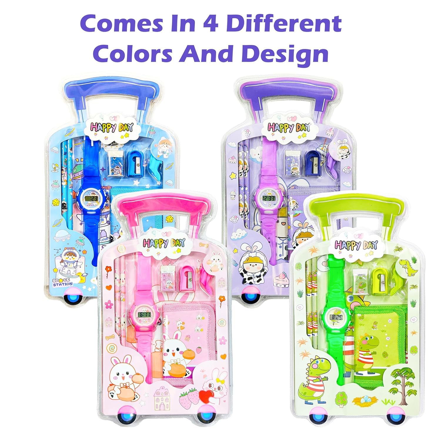 - π Adorable Suitcase Design: Comes in four vibrant colors - Blue, Pink, Purple, and Green!