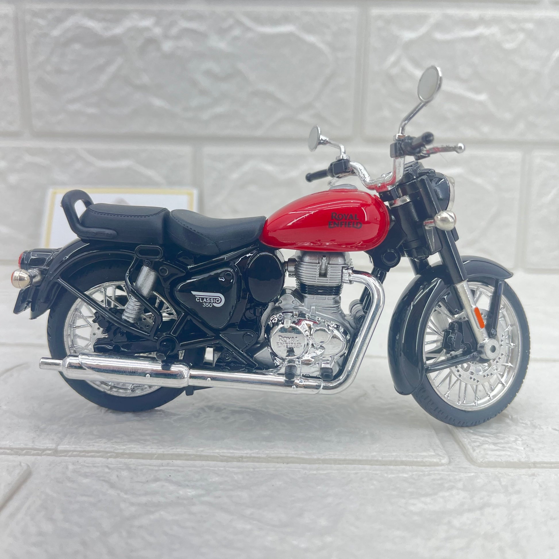 - Authentic Detailing: Every curve, every chrome accent, every emblem is faithfully replicated to mirror the real Classic 350.